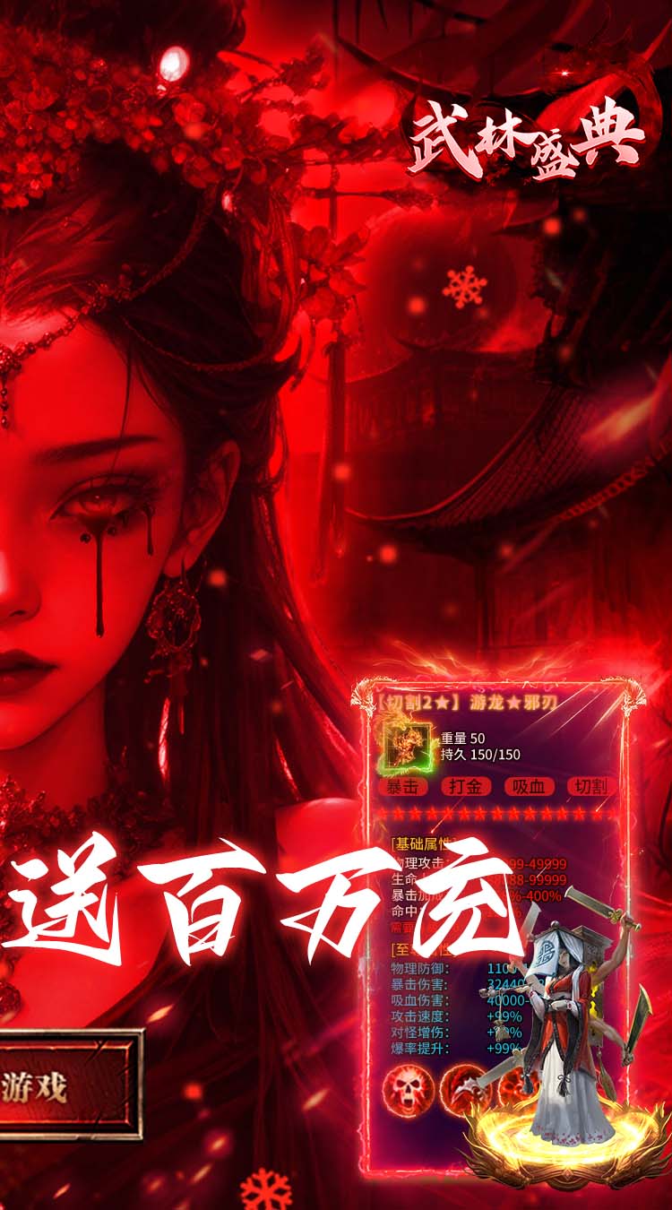 冰雪燃战,逐梦传奇!《武林盛典(冰雪送100万充)》以冰雪中变为魂,以僵尸伴战为核,以三折福利为翼,以多元玩法为脉,打造一场兼具热血、休闲与福利的冰雪传奇盛宴。在这里,你可召唤僵尸伙伴,抗怪砍怪、并肩作战;可畅享三折充值、百万充福利,顶赞免费领;可凭借创角豪华福利,开局即巅峰,护肝不费力;可沉浸精美冰雪画质,参与多元活动,热血不枯燥。无论是偏爱冰雪题材的传奇老玩家,还是刚入坑的新手玩家,无论是零氪休闲党还是热血肝帝,都能在这里找到属于自己的乐趣。立即下载《武林盛典(冰雪送100万充)》,召唤僵尸伙伴、领取百万福利,执剑闯冰雪、并肩战传奇,零氪逆袭成大佬,书写属于你的冰雪传奇荣光!